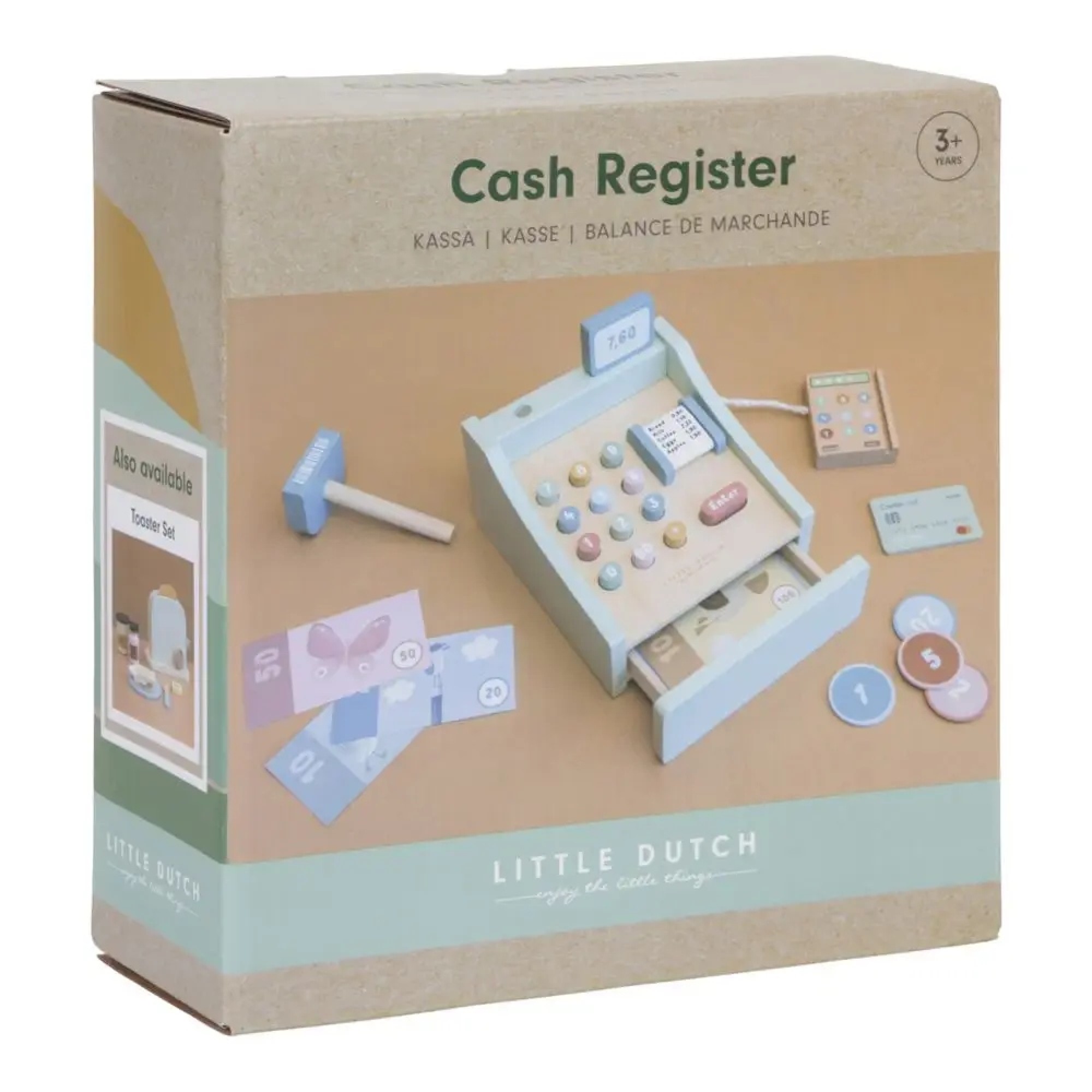 Drewniana kasa od Little Dutch to wyjątkowa propozycja dla małych sprzedawców i kupujących. Wykonana z certyfikowanego drewna FSC, zachwyca pięknym retro designem oraz nową, pastelową kolorystyką. Zestaw zawiera wszystkie akcesoria niezbędne do zabawy w sklep: terminal płatniczy, monety, banknoty oraz praktyczną szufladę kasową.