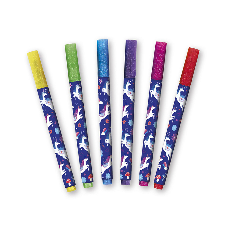 Brokatowe flamastry markery 6 kolorów Jednorożce Kraina snów 6+