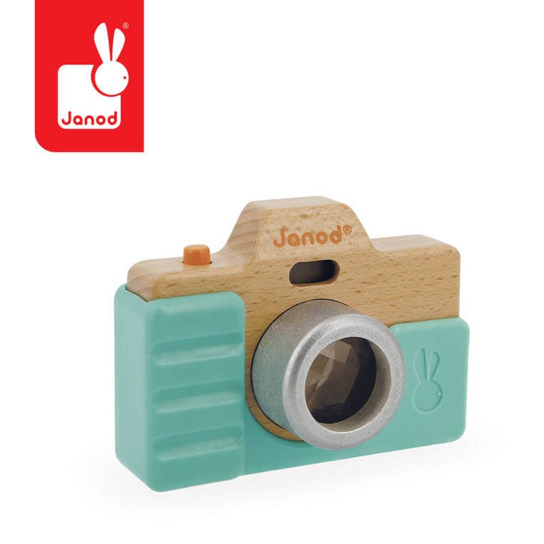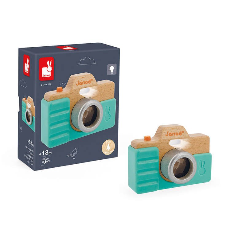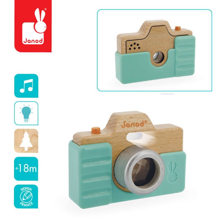 Janod Drewniany aparat fotograficzny z dźwiękiem i lampą błyskową 18 m+