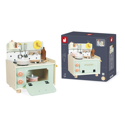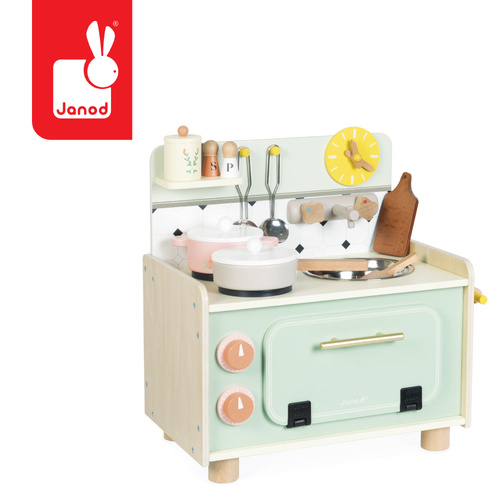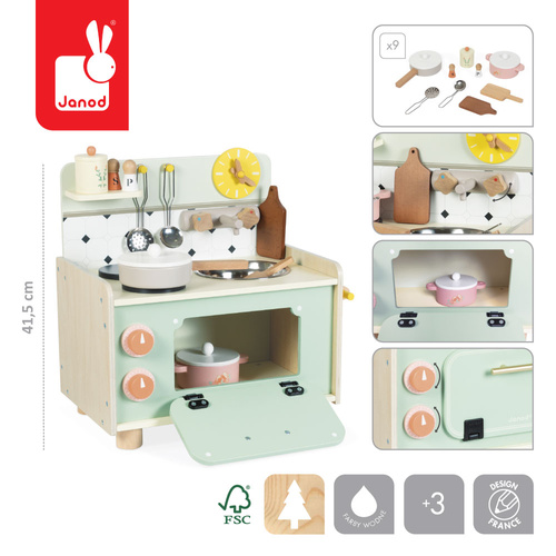Janod Mała drewniana kuchnia z 9 akcesoriami Shiny Grandma 3+
