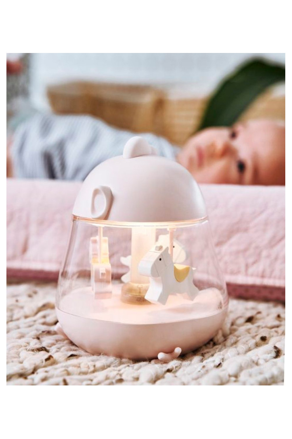 Lampka ułatwia dziecku zaśnięcie w rytm kojących dźwięków pozytywki i kręcącej się jednostajnie karuzeli z trzema uroczymi konikami. Melodia pozytywki jest bardzo łagodna i spokojna. Światło lampki tworzy w pomieszczeniu niepowtarzalny, harmonijny, wypełniony miękkim światłem klimat. W godzinach nocnych ułatwia doglądanie najmłodszych pociech, zmianę pieluch i karmienie piersią.