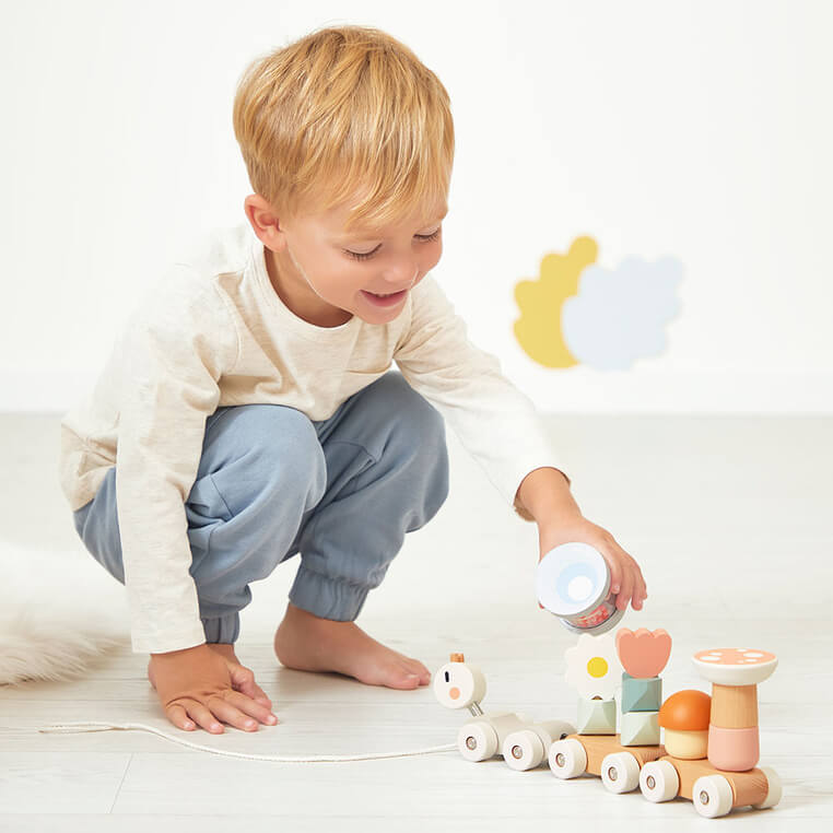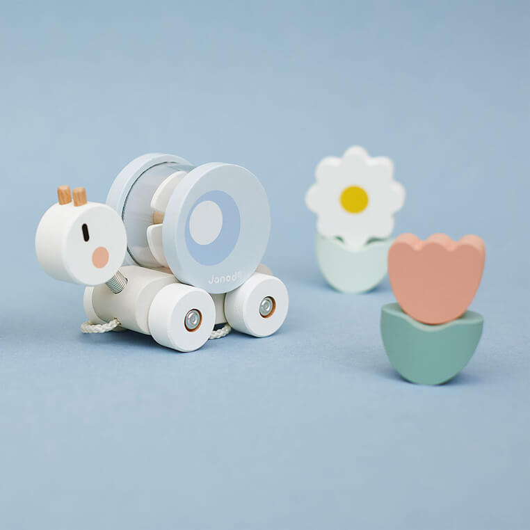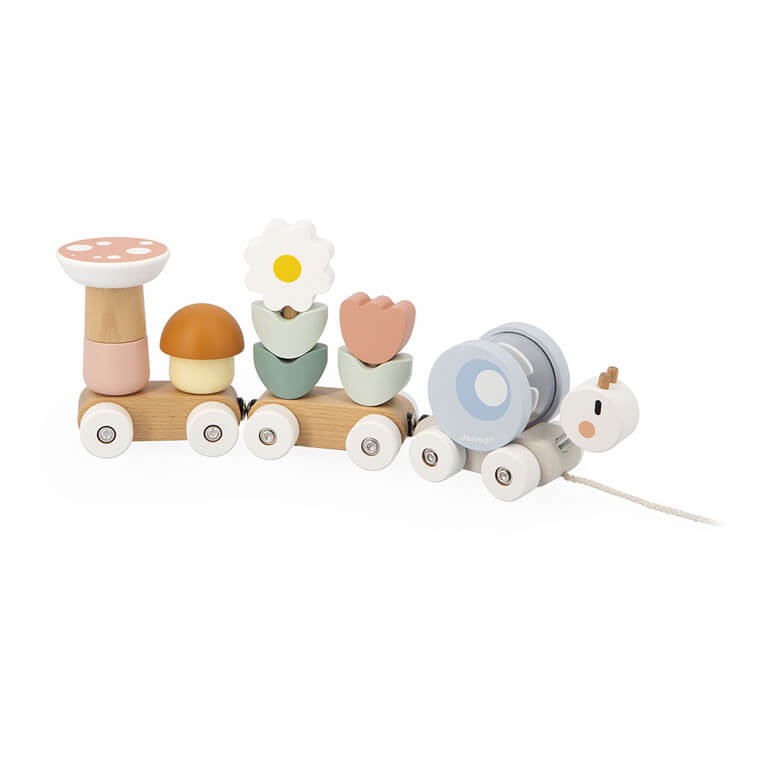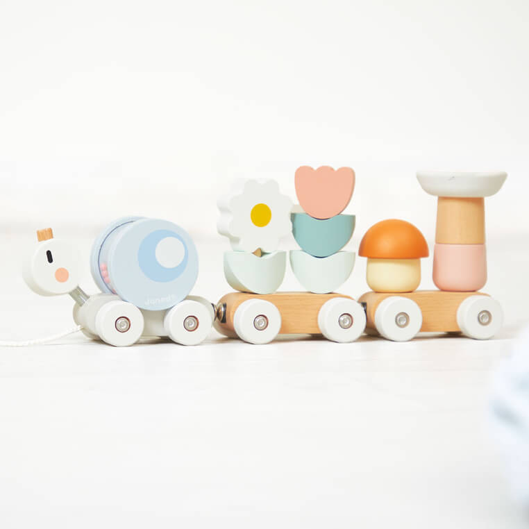 Magnetyczny drewniany pociąg Ślimak z kolekcji Sweet Cocoon francuskiej marki JANOD