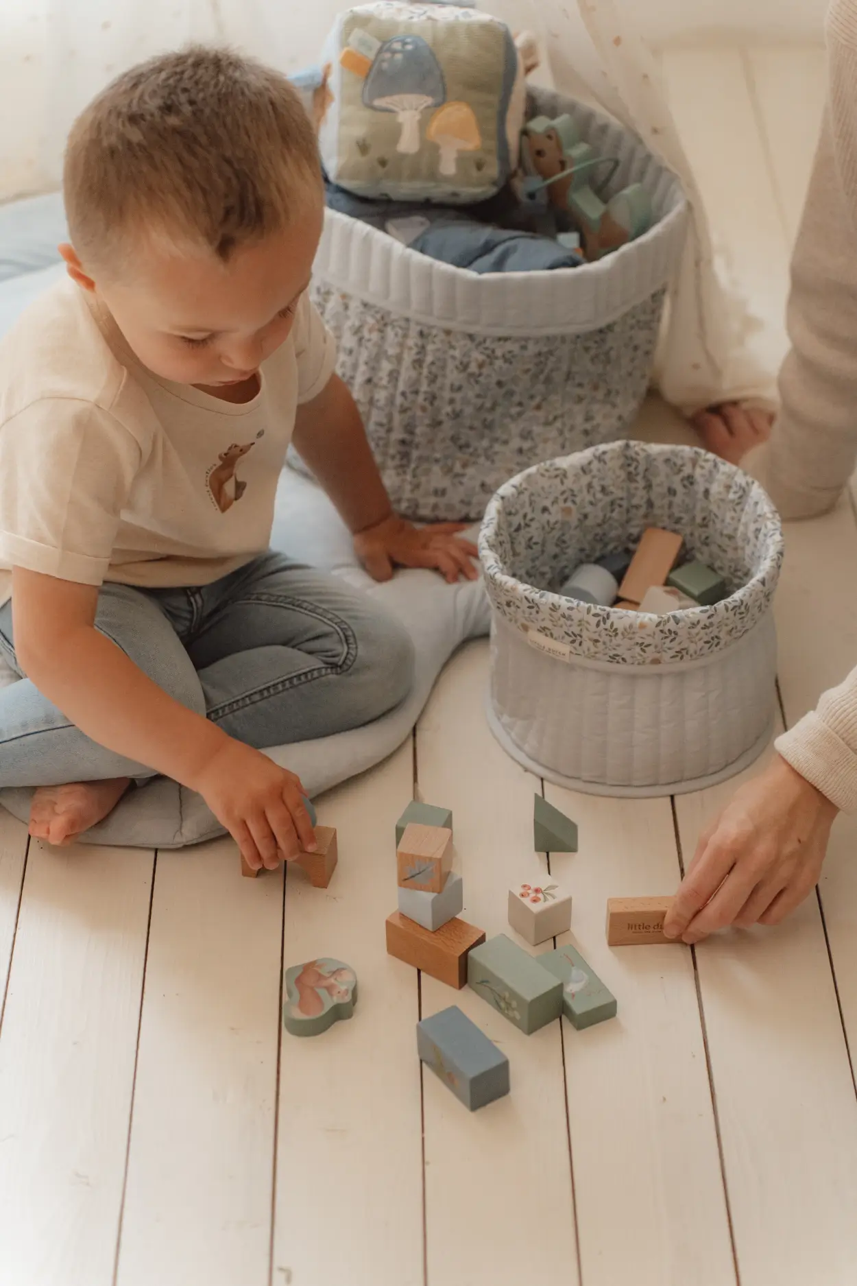 Zestaw klocków Forest Friends FSC od Little Dutch. Ten uroczy zestaw klocków został stworzony aby rozwijać wyobraźnię oraz umiejętności motoryczne dziecka w trakcie zabawy. Komplet składa się z 50 drewnianych klocków w różnych kształtach i rozmiarach, ozdobionych motywem z kolekcji Forest Friends – idealnych do zbudowania czarującego lasu pełnego liści, grzybów, owoców i zwierząt. Pięknie zapakowane w estetyczne opakowanie ułatwiające przechowywanie. Stanowi świetny pomysł na prezent i doskonałe uzupełnienie dla pozostałych zabawek z kolekcji Forest Friends od Little Dutch.