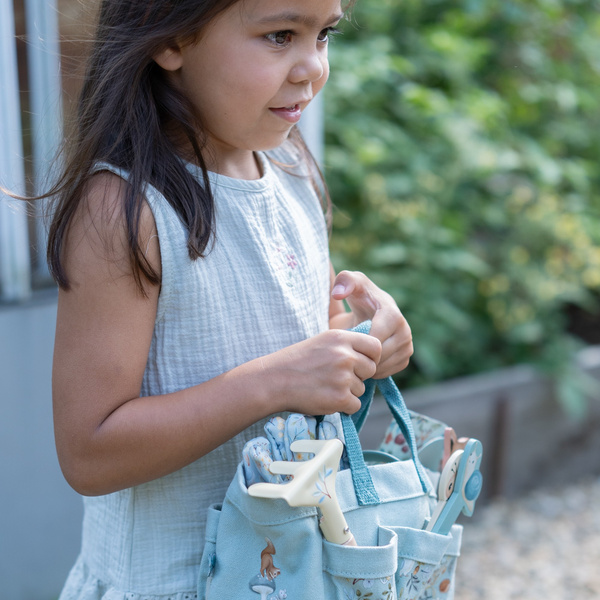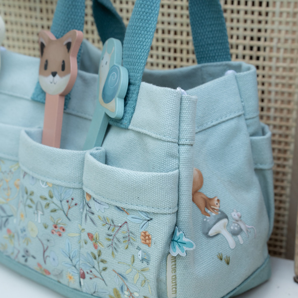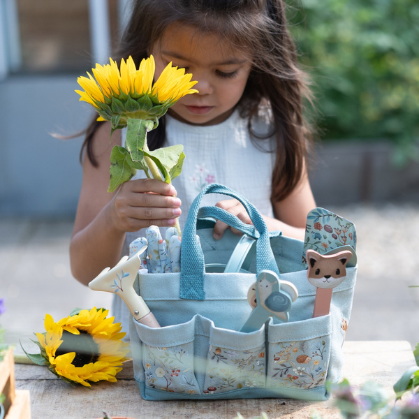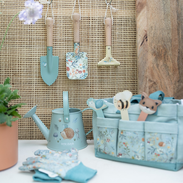 Zestaw prezentowy małego ogrodnika Forest Friends od Little Dutch. Ten 10-częściowy zestaw zawiera wszystko, czego potrzebują mali ogrodnicy: poręczną konewkę, mały zestaw narzędzi, 2 wytrzymałe rękawiczki i drewniane patyczki-znaczniki do zapisywania nazw roślin. Wszystko można wygodnie przechowywać i przenosić w wytrzymałej bawełnianej torbie, ozdobionej ilustracjami z kolekcji Forest Friends. Torba ma dużą kieszeń główną, 6 małych kieszeni bocznych i 2 duże kieszenie boczne. Ten zestaw jest nie tylko funkcjonalny i praktyczny, ale także dodaje stylu wszystkim małym ogrodnikom, którzy rozpoczynają przygodę w ogrodzie. Wspaniały pomysł na prezent i idealne uzupełnienie pozostałych produktów z Kolekcji Ogrodowej od Little Dutch.