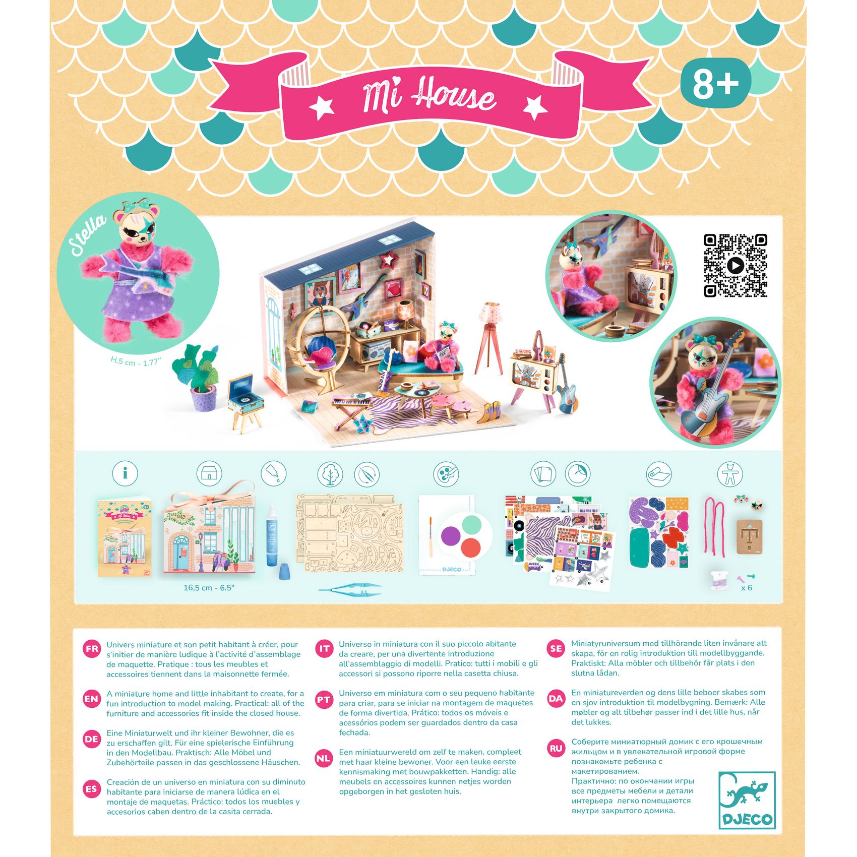 Kolekcja Mi House przedstawia drewniane domki z wyposażeniem do samodzielnego ozdobienia i złożenia. Idealne wprowadzenie do świata modelarstwa, gdzie tworzy się projekt od podstaw do najmniejszych szczegółów. Od malowania, po montaż i sklejanie: instrukcja prowadzi młodych artystów krok po kroku do efektu końcowego. Poniżej dostępny także tutorial w formie video. Różne kreatywne techniki wspomagają rozwój manualny dziecka, zapewniając jednocześnie świetną zabawę.